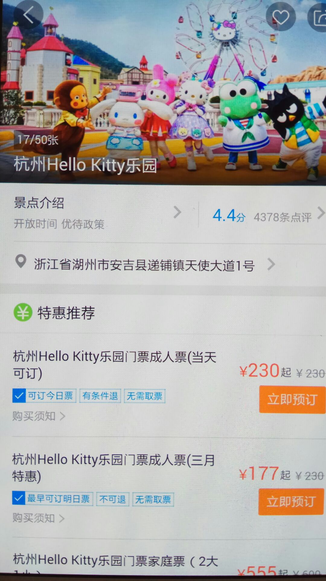 携程只有成人票和家庭亲子套票,成人票300元。