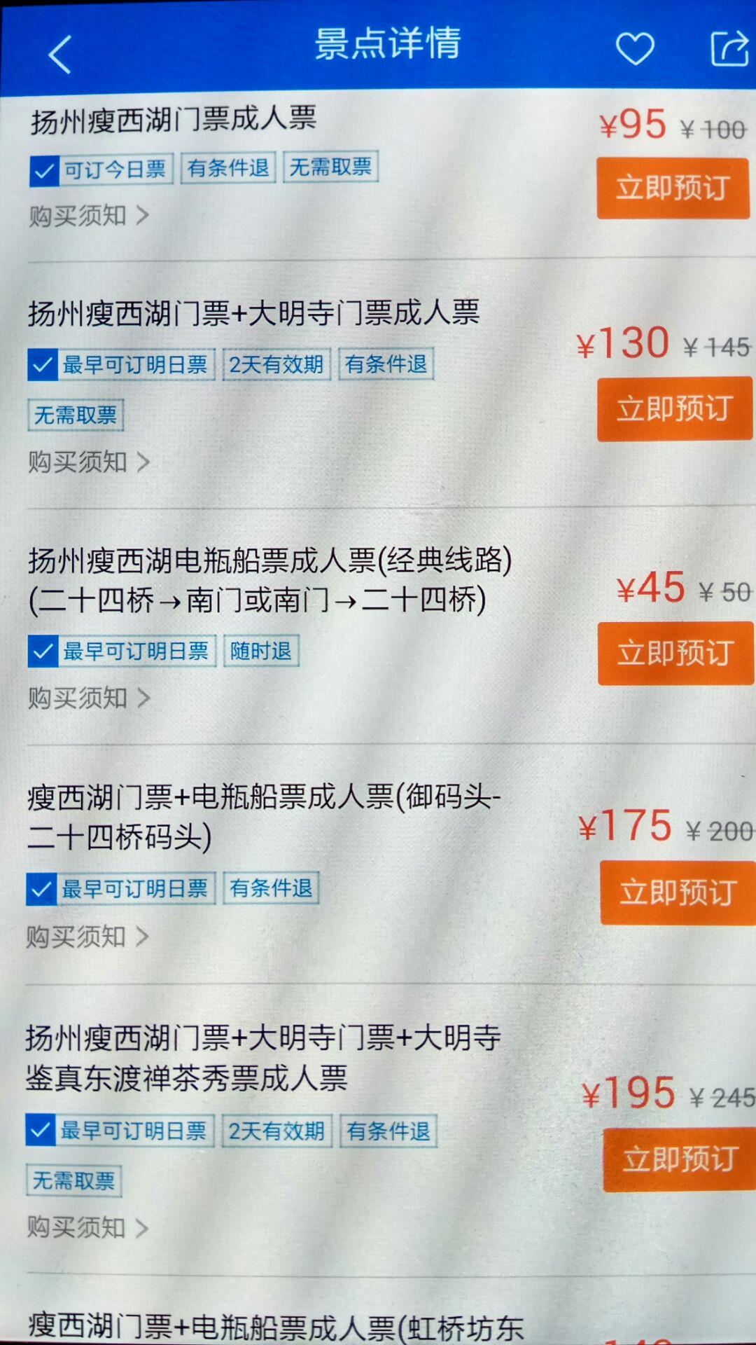 携程平台购票是有优惠的,需提前一天预订,可单独选择门票、船票,也可直接购买组合套餐。
