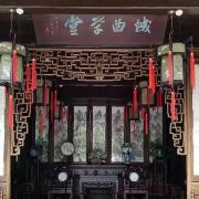 枕波双隐处,平江耦园情。苏州的第四天,一早游览了拙政园后,从北口进入平江路,一路由北向南,看了戴望舒写《雨巷》的丁香巷后,在又一条小巷左拐,沿河向东,来到耦园的南门。与拙政园相比,耦园少了几分喧闹,多了些许宁静。这里游人较少,只是有一对一对穿着汉服的青年男女在做旅拍,据说是因为耦园之耦象征着爱情,所以成了情侣照、结婚照的必选之所。因为游人少,所以真的可以优哉游哉地闲庭信步,慢慢地驻足欣赏其枕波双隐、织帘老屋、城曲草堂、偕隐双山。而且还有足够的时间与空间去念念那些含义深刻的楹联。我个人比较喜欢这几幅:还砚斋的“闲中觅伴书为上,身外无求睡最安。”偕隐双山的“逍遥于城市而外,仿佛乎山水之间。”城曲草堂的“卧石听涛满杉松色,开门看雨一片蕉声。”当然,“耦园住佳耦,城曲筑诗城。”更是整个耦园的注脚和写照。还有一件趣事,在园中二楼有几个房间,居然挂着“婚姻登记处”的牌子。想来恋爱中的青年男女能够在耦园里登记结婚,确定百年之好真的是颇有一番情趣的。