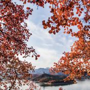 一直以来我们都以为远方才是最美的,总觉得身边的一切都平淡无奇,其实这种想法本身就是错误的,美好的东西其实是无时无刻不在我们身边的,但是很多时候我们只是被眼前的乌云遮住了眼睛,看不到事物本身的美,总以为别人所说的那个远方很美,其实诗和远方不一定都在远方,仙境也不是在遥远的他乡。金秋的金海湖,它不是春天般的万紫千红,也不像夏天那样生机盎然,更不像冬天那样银装素裹,秋天的金海湖是色彩最多的季节,漫山遍野的红叶摇曳起舞,群山环抱层林尽染,万亩彩叶与波光粼粼的金海湖景相互映衬,有传统的黄叶、元宝枫、火炬、也有红花、臭椿、黄金槐等众多树种,色彩斑斓,妩媚动人。