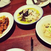 出龙翔桥B出口就看到了,挺好的,两个人消费100块,挺合适,吃得饱,老公说最舒服的就是桂花酒酿丸子,虾仁豆腐还可以的,茄子稍微有点腻,凤爪很好吃,重点是价格很实惠。这个肉什么酸梅肉,浪费了,腻,只吃了几块。生意很好,上菜速度挺快。这一顿吃的很舒服。