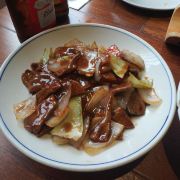松鼠桂鱼,典型的杭州菜啦还是苏州菜?不管了,反正我认为比必点的西湖醋鱼更合我心意。吃了两天的醋鱼后,终于给我换口味了,想不到无意间走进的这家,居然就是看家菜,每桌似乎必点。