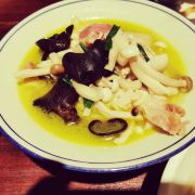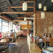 大牌大,学士路41号。距离龙翔桥地图站仅仅几步之遥。 [环境]位于西湖景区,青砖黛瓦古韵浓,两层老建筑,一楼“文火慢炖”,香飘四溢,拾阶梯而上,砖瓦栋梁,灯笼低垂,古色古香,南宋风情,江南悠韵,展现朦胧婉约之美,大牌大粗犷外表下,有一颗古典细腻的心。 [服务]自助扫码点单,服务员身穿古服,动作利索,礼貌周到。 |糖醋里脊^酸甜可人,外酥里嫩。糖醋里脊,从儿时爱到如今。 |虾肉嵌豆腐^新鲜的虾肉,镶嵌在油豆腐里,撒上蛋皮、紫菜,虾壳的鲜一点点渗透到清汤里,与虾肉的味道遥相呼应。 |笼仔煨菌菇^菌菇、黑木耳、火腿片,每一道食材都提鲜,入口细嫩柔滑延绵,菌菇汤拌饭,如此舒适落胃。 亲民大牌大,地道本帮味。如果你来杭州,值得去拥有。