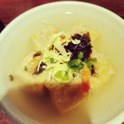 平价杭州菜馆 惊先无敌臭豆腐 这家店是我们在杭州的最后一天中午去吃的,想着也就随便吃点,就去赶高铁回家了! 环境:挺不错的,是那种比较复古的木质风格,家里老人觉得还蛮有趣的,一直在说这里的装修、结构啥的。 中午11点多的时候过来,直接上的二楼,没什么人,这里的大桌子还是挺多的。 苋菜梗蒸臭豆腐 ♥️♥️♥️♥️♥️ 超级无敌推荐啊!!! 虽然它其貌不扬,而且还特别的臭(这个臭豆腐的臭真的和平时路上那种炸臭豆腐的味道不一样) 但是真的好好吃啊!爱了 我去特地百度了一下,据说苋菜梗也是浙江这块的名菜,就是特别的臭 这道菜把两个特别臭的东西蒸在一起,把臭味叠加,真的是绝了!! 哈哈哈哈,其实也还好啦,就是比正常臭豆腐臭一点,更好吃一点,我们一大家子人都可以接受的,喜欢吃臭豆腐的一定要来试试。 卤大肠 ♥️♥️♥️♥️♥️ 这道菜也好吃的!最外面的一层是脆脆的,口感很好,也挺入味的,大肠的臭味也没有特别重。 这个卤大肠比我这几天在其他店吃的要好吃! 可以试试! 冲着上面这两道菜,我就决定给这家店5颗星!! 真的是这几天,比较让人惊艳的菜! 杭州名点(迷你版) 旁边还有一张小纸,可以看看这几样糕点的介绍,一共有6块,我们一人一块就吃掉了。 白切鸡 马蹄莴笋 南宋酒香虾 这几个菜也还可以啦,普通家常菜的感觉。 宋嫂鱼羹 ♥️♥️♥️♥️ 这个我是第一次吃,个人还是挺喜欢浓稠的汤的,感觉有点像酸辣汤,但是比酸辣汤清淡。 这家店真的很便宜啊,我们7个人,好像一共只吃掉了300块钱左右!? 比较接地气的餐厅,虽然摆盘啥的比较普通,并没有那么精致,但是味道还是可以的!特别是臭豆腐!!哈哈哈哈 以后有机会还要来吃臭豆腐!!