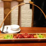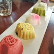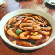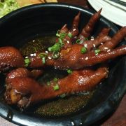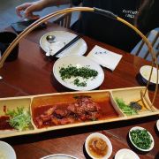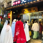 龙翔桥地铁站附近好吃的杭帮菜还是蛮多的。这次路上试试大牌大。 巧遇了不晓得是刚演出结束还是cos play的一群汉服爱好者,配上古典风的建筑,还真的有点穿越时空的感觉。 麻油笋尖,春笋正当季,简单的用水焯一下,麻油凉拌下,就很嗲了。 南乳扎烧,几乎每桌必点,可以选原只或梅肉,梅肉款的吃起来不会那么腻,腐乳汁的香气已经渗入到扎肉里,咸香可口。 糖醋里脊做成了炸丸子的形状,表皮更酥脆,还是蛮喜欢这种改良的。 桂花酒酿圆子,普普通通,可能自己家里做的更好吃呀。 桃花酿,粉嫩嫩的酒瓶和淡粉色的桃花酿,淡淡荔枝果香,一小盅一小盅得慢慢品,还是蛮有趣的。 这些加起来人均也不到80块,性价比真心很高了。晚上5:00左右还不要排队,5:30左右就已经需要等位了,要吃还是尽早来~