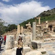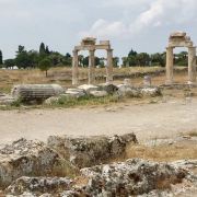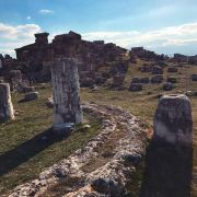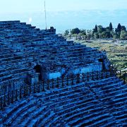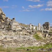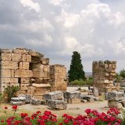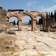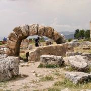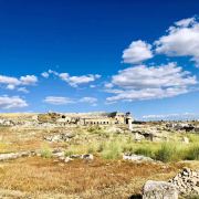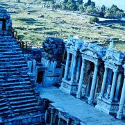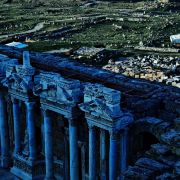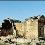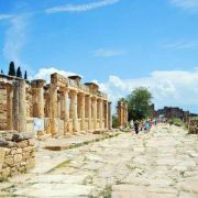 棉花堡附近的古希腊著名圣城——希拉波利斯古城遗迹:公元前二世纪时由帕加马王朝所建,作为王室和贵族的温泉疗养胜地。目前还遗留有大浴场、竞技场、街道、大剧场和古坟场等残垣断壁。