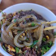 重庆酸辣粉在全国各地是很出名的。作为开在八一路好吃街的好又来酸辣粉人气很旺,几乎承载了这里一半的重庆夜景,8元一碗杂酱面酸辣粉,食材配料丰富,味道很好,值得推荐!