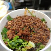 说实话,买之前还很兴奋,好不容易找到了这家店,排队付钱然后排队拿东西,最后吃到嘴里那一刻,恨不得直接丢垃圾桶…… 8元一份杂酱酸辣粉,粉条貌似泡了很久,一股油耗味,还不如在上海吃的酸辣粉好吃…… 5元一份冰粉,很一般,就是各种葡萄干、酒酿、花生、芝麻、红糖等堆砌而成,冰粉的口感跟假果冻似的…… 还不如点凉面呢……看起来五颜六色可能会比较有食欲~ 再也不会打卡这家店的任何多东西了~ 好又来 分店那么多,随便哪一家都行了~