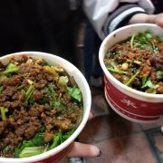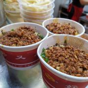 重庆的酸辣粉和重庆火锅、重庆小面是一样的全国有名,作为重庆名小吃,好又来酸辣粉在重庆有很多门面。其中位于重庆解放碑好吃街正门右侧八一路总店的好又来酸辣粉是一家名气很大的网红店了。 杂酱酸辣粉是必推的,8元一碗,特别好吃,里面肉臊子很多,伴有花生米、肉丁、香菜、榨菜等丰富作料,酸辣滋味,比一般店里的酸辣粉口味棒,是正宗的重庆酸辣粉。 店名没有堂食,解放碑人来人往,来点小吃的人很多,一般端起一碗酸辣粉就可以直接在手上解决了。