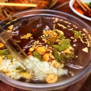 排队最多的就是他们家,酸辣粉名不虚传,真的好吃,尤其是那个肉酱,扑鼻的香气,凉糕也很好吃,比较解辣,我喜欢。