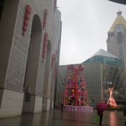 第一八佰伴,位于上海浦东新区陆家嘴。 坐在正门小广场前,看人们走过,或熙熙攘攘,或雨中伞摇,分别是一番景象,又仿佛人生路上的景观。 官方介绍:上海第一八佰伴有限公司是中国第一家中外合资大型商业零售企业。位于浦东新区张杨路501号,西邻浦东南路、杨家渡,东邻南泉北路、世纪大道。 从前第一八佰伴这个点不算位于陆家嘴,但随着陆家嘴的开拓发展,包括陆家嘴区域本身的逐渐扩展及陆家嘴名气的远播,八佰伴周边之繁华带已连接着原陆家嘴金融商厦圈,的确构成了如今的大陆家嘴繁华商业圈。八佰伴商厦和临近的商业建筑群落,与陆家嘴中心L+Mall广场,隔着商城路相望。 第一八佰伴之东偏北,是南泉路;八佰伴之东,紧邻的大街,为浦东南路;八佰伴之南,是张扬路,东西走向而西稍南。 第一八佰伴的正门(二号门)前的小广场,就在浦东南路和张扬路的夹角上,多少年来,这里几乎成了地标。年轻时,约会碰头的地方。 曾写过:去国十年后第一次归访上海,发现故乡旧貌换了新颜,连老家都不识了。 其时主要暂住在浦东新区,近第一八佰伴,而常去八佰伴楼上就餐;八佰伴门口,朝着浦东南路的大门口,是个年轻人约会碰面的好地方……这生第一次正式的单独的约会……沿着浦东南路,散步到八佰伴;或者沿着大道,大概漫步到东昌路轮渡站,摆渡过江,在热闹的外滩玩一会,再回浦东……记得那时比较绅士,会送人回家;记得那时年轻浪漫,一别三送又二小时。 ……前世今生,期望的总是擦肩而过,不期丢落的红叶却在肩头沾了一路,虽然路总有结束的时候。 一切都应该被忘却或将被忘却,虽然曾经美好,仿佛落叶,仿佛宿雪…… 而雨中淋湿的人们只见烟雨,不见夕阳。 烟是近在眼前的手里拿着的一支,此时此地,哪里有淼淼上的袅袅。 而我试图遗忘,以便遗忘后纪念,如曾与我同一书房的先生所说,为了忘却的记念。