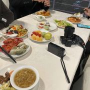 景色真是不错,尤其你看到外滩密密麻麻的人潮,你感觉还是坐船好,转了2圈呢。餐饮还过得去,有鸡肉,鸭肉,虾,还算新鲜,就是个头小,还有几样炒菜,炒饭,意大利面。刚开始人流集中,有人管理排队啥的,还行,后来大多数人都跑楼上看景了,我又下楼吃了几样水果,我看其他的菜也还都有。西瓜,小西红柿,小甜品,冰露,凉的10块一瓶。