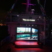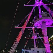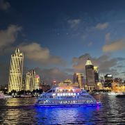 “携程旅行”冠名的“快乐船长8号-老上海风情号”,在黄浦江游览的众多游船中,绝对是颜值担当。登上海盗船打扮的游船,启航… 吹着夜幕降临的微微江风,听着“夜来香”的靡靡之音,伴着游弋江中的艘艘游艇,东岸-时尚斑斓的陆家嘴城市天际线,西岸-金碧辉煌的外滩万国建筑群…璀璨的灯光,浪漫的风光,上海夜景Top1。