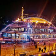 “携程旅行”冠名的“快乐船长8号-老上海风情号”,是众多黄浦江游船的最佳颜值担当。 登上海盗船打扮的游船,启航… 18:30启航,近2小时航行时间,约20公里航程(两次往返十六铺3号游船码头-秦皇岛路轮渡码头河段)。前30-45分钟在一层餐厅用自助餐,大部时间登上甲板观赏外滩-北外滩两岸风光。 吹着夜幕降临的微微江风,听着“夜来香”的靡靡之音,伴着游弋江中的艘艘游艇,东岸-时尚斑斓的陆家嘴城市天际线,西岸-金碧辉煌的外滩万国建筑群…璀璨的灯光,浪漫的风光,上海夜景Top1。