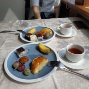 今天不冷不热,天气晴朗,站在船上看风景果然不一样,船航行90分钟,取票在同一地点取票,上船时间很准时,过了安检会有好像是旅行社的吧(不知道哪里的人)会来送茶歇券,准时上船,准时开船,行驶缓慢,今天人不多,茶歇是服务员送过来的,有咖啡红茶自助形式。