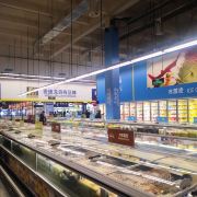 浦东的这边卖的龙,晚上他该十点关门吧,然后生意挺好的,晚上会有一些打折的产品,收购排队挺多人的,有会员卡,然后不要袋子也是可以的。