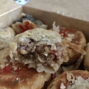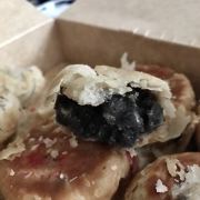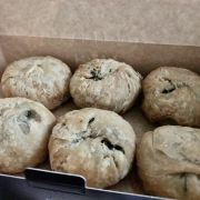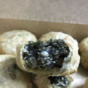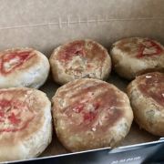 「三陽南货」 这两天去南京路步行街,各家老字号各种排队队伍,大家对月饼的热情度真是厉害!昨日去三阳南货排队买苏式月饼,竟然排了2小时。 「苔菜月饼」三阳的苔菜月饼是出名的,一直都是招牌,也是每年都买。味道依旧不错。 今年三阳还有鲜花饼和椒盐饼,好奇心买了一盒混搭的。 「鲜花饼」鲜花饼和云南的鲜花饼不太一样,看不到艳丽的鲜花花瓣,但有淡淡的花香。里面方块状的冬瓜糖太多了,甜得厉害。 另一款椒盐饼里面是黑芝麻的馅料,也是第一次吃到黑芝麻椒盐,依旧是夹杂了好多冬瓜方糖,一边吃,一边挖,排队那么久不值得!对年纪大的老年人来说非常不推荐!