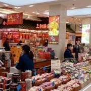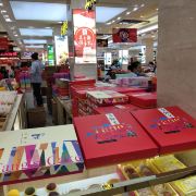 商店大楼的购物环境不错,顾客购买踊跃,商品食品的品种齐全,有各式干果和果脯,肉脯和火腿腊肠,点心月饼,伴手礼盒,糖果等,食品包装精致,非常适合节日送礼之用。