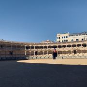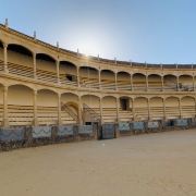 现代式斗牛的发源地,西班牙最古老的斗牛场之一,也是斗牛士们朝圣的地方,西班牙现今的斗牛方式就是在这座斗牛场诞生的。这座建于1785年的圆形建筑物可容纳五千名观众,并列着136根托斯卡纳式厚重石柱,令人深感历史的沉重。西班牙斗牛史上名气显赫的斗牛士,如Pedro Romero 、 Antonio Ordonez等,都曾在此与蛮牛进行生死博斗。 在过去斗牛属于贵族专有的活动,参与活动的贵族是骑着马进行斗牛。直到有位贵族技艺不精,被蛮牛冲撞得人仰马翻,在这命在旦夕的霎那,一个平民冲进了场中挥帽引走了蛮牛,他这一举动不仅为贵族解了围,也为隆达斗牛场开启了斗牛士下马斗牛的新时代。