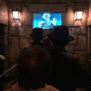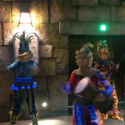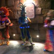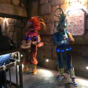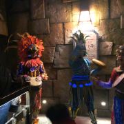 飞跃地平线应该算得上是迪士尼里面排队最艰难的项目了,从门口石头洞一样的地方开始排,一路进入各种房间,到达星空穹顶的房间后还要排很久,甚至最后终于分成小队,看导览片了,还要等上一会儿,真是心累啊。 进去后是上中下三层座位,如果能坐在最上层是最好的,全程不会看到别人的脚丫子。 整个观影也就几分钟啊,不知道为啥会这么慢。。。效果还是很不错的,就像打开了新世界大门,虽然很多建筑物因为拍摄关系都畸变了,不过总的体验还是不错的。感觉这个项目是没有任何危险系数的。