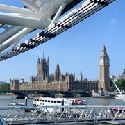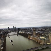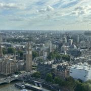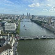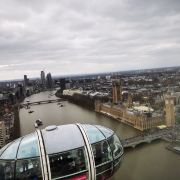 伦敦眼上可以俯瞰伦敦的全景,可以携带一个望远镜,景色尽收眼底,非常震撼!伦敦眼的观景舱中有空调,非常凉爽,旋转一圈半个小时左右,非常值得体验!
