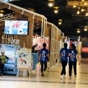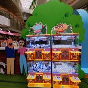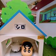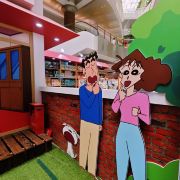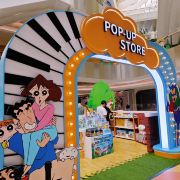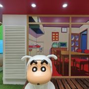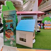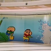 白玉兰广场一楼中庭的蜡笔小新主题快闪店活动,绿色的地垫和布景装置,适合这个夏天,给人很清新的感觉。 小新标志性的两道浓眉毛,胖乎乎的脸蛋,还是那么有喜感,他乖巧又调皮的两面性,也是很多小朋友的共性。