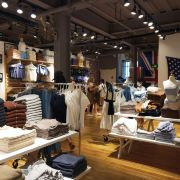 上海超火的BRANDY MELVILLE,经常排队,必须早去。 有三层楼,买单在二楼,试穿衣服在三楼。试衣间很多,不用排队。 衣服都是很少女的,而且只有一个码,适合身材很好的妹妹穿。服装整体价格不贵,很新潮。 场内溜达的都是行走的荷尔蒙,特别是收银员全部又高又瘦。