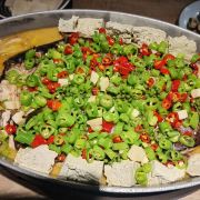 一家烤鱼人气很高自然会让吃货的我带着好奇心来打卡一下,点了最招牌的青花椒味,烤鱼上来后迫不及待动筷尝了一口,有点小惊艳,青花椒味特别浓郁,鱼肉极嫩,舀了一小勺汤,也是非常鲜美的,配菜豆腐年糕这些感觉放啥都好吃,小酥肉也炸得蛮地道,趁热吃,好吃,总体来说是值得去吃一下的店