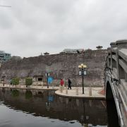 从海滨长廊一路走过来,过马路就到了石炮台公园,门口就有2个大炮很有气势,走进公园有护城河,围着的环形城堡就是崎碌炮台,围绕城墙走半圈就可以登上炮台免费参观,不过我去的时候比较晚了18点已经关门。 但是公园大门是23点才关门的,如今石炮台公园也是周围居民锻炼健身的地方,可以看到不少人围着炮台一圈圈快走跑步,护城河里养着鸭子天鹅,一片祥和之气,很有纪念意义的公园。