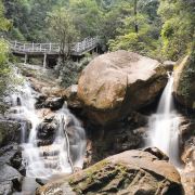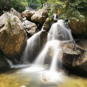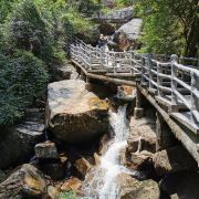 猴子寨景点就在景区大门口不远,溯溪而上一边爬台阶一边欣赏身边的瀑布,听着水流的声音,时而潺潺,时而雷鸣,整个瀑布从山顶到山底,分成好多节,有一节瀑布可以下到水潭清水。我的时候还在景点维护和观景台重建,人不多,按标牌计划是9月初完工。图片都是猴子寨瀑布。云台山道路维修未开放,将军寨的瀑布需要单程走1.5个小时才能看到,不如猴子寨的方便。
