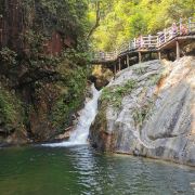 五一小长假跟着携程当地向导退伍军人小邝游湖南郴州国家森林公园——莽山森林公园。来之前查了不少功略和咨询地接,我们最终选择了携程当地向导退伍军人小邝。全程用他的车,让他推荐我们的住宿,环境不错很干净,而且价格非常的优惠。行程也安排的非常合适。我们当天是做高铁从深圳到郴州西站,小邝早早就在出站口等我们了。等我们到站,接到我们直接出发前往莽山。 经过两个小时左右的行程,我的到达莽山风景区,也是下午时间,这也是我们的第一站猴子寨和莽山博物馆。地理环境优越,自然资源丰富,它背靠原始林莽,危崖|峭壁,古木蔽天,谷狭径幽,山扶水转,山水相间,飞瀑成|群,一瀑一潭错落有致;空气中所含的负离子是非常高的。时有野猴来此觅食戏水,是游人戏人水观猴、吸负离子润肺的最佳境地。该景区主要有碧水潭(银练玉盆)、春姑潭、观天潭、猴王潭、乱石滩、孔雀开屏、水帘洞、乱石飞瀑、盘龙谷等景点。这的游玩时间差不好2小时左右。景色非常不错。游玩这,我们游玩这结速当天的行程。 第二天的行程。早上我们七点半出发前往第二站天台山景点。经过半个多小时的路程时间我们到达天台山停车场。来这的路不是很好开,但小邝的开车技术还是非常不错,很平稳的。在这的游玩时间差大多3小时左右。有“中南第一险”天台山之称,天台山主峰高1752米,是莽山第二高峰。山间云雾缭绕。非常独特的山岭。游完天台山,中午我们在下一站,附近吃午餐,吃完午餐休息好我们进行第三站将军寨(也称鬼子寨)。这个景点是景区最大的景点全部走完差不多要3个多小时。我们是在小邝的带领下走完了全部的景点。原始森林深处,300余米的幽深峡谷中,千尺飞瀑狂泻,四周悬崖峭壁遮天蔽日,奇松怪石令人惊叹叫绝。在3000亩风景区内,峰林之奇,花木之秀,飞泉之美,松石之神,在天际间组成巨幅有形有色有声的奇伟画卷。1957年,鬼子寨风景区就已被列为全国14个自然景观区之一,也是当时湖南省的第一个自然景观区。 气吞寰宇──鬼子寨瀑布游人未至鬼子寨,在大森林里就能听到远处传来一阵阵雄浑悦耳的水吼声。及至寨谷,大瀑布顿时跃人眼前,游人都会神情凝固,心境激荡。真不愧有小张家界之称。这次出行还好找了携程当地向导退伍军人小邝要不然真不好走,这次出行还真是高品质、姆似的出行。小邝人很细心。一路帮我们拍了不少的照片和小视频。时刻提醒我们要注意安心,非常贴心的服务。选择军人就是不一样的旅行。