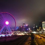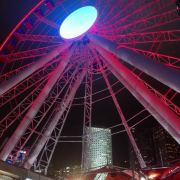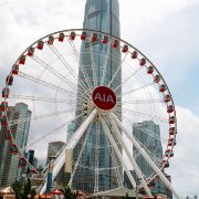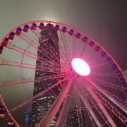 如今摩天轮似乎很多城市都有,香港中环摩天轮,是香港一座60米高的巨型摩天轮,位于中环海滨长廊上,在上面,游人可以饱览维港两岸景色! 时不时的看到TVB里的摩天轮,以前在ifc里远距离的看到它,这次近距离的去看看,每个城市都有它不同的美,路过了就去看看吧。