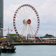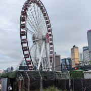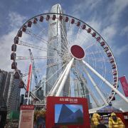 从尖沙咀坐天星小轮到中环码头,下船后就可以看到摩天轮,离海岸很近,可以周围在施工,没有开放,只能在附近转了一下,拍照打卡,希望下次再来可以乘坐一下。