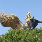 大连童牛岭位于金州区南侧,山海相依,碧蓝的大海紧靠着葱郁的东山,为以发展工业为主题的金州保留了一份自然生态的环境,给平日埋首工作的金州人提供了一片静谧休憩的场地。 登上童牛岭的最高,北眺是高楼林立、生机无限的城区,南望浩瀚无垠的大海近在咫尺,就在这里.2002年起矗立起了一座飞碟式的建筑――建区18年,主人希望藉此寓意这座新城的二次创业腾飞,与此同时也要将之变成一个自然生态公园――山上大片栾树、黄栌以及油油碧草、茂密梨园确给人以回归森林之感。