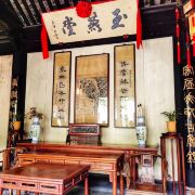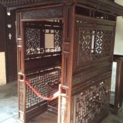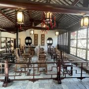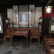 张厅是明代风格的建筑,和不远处的沈厅比差了一进,只有六进,不过因为它是官宅,所以自然有自己的气派。最大的特点是轿从门前进,船自家中过,张厅门口摆了一个官轿,这是身份的象征,后花园还有小船方便主人出行或者运输货物,这在其他建筑中并不常见。总之还是很值得一看的。