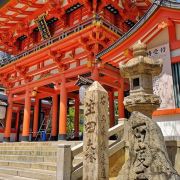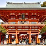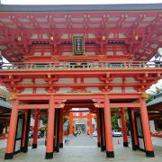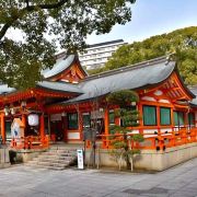 生田神社位于三宫这样很核心的市中心区域… 整个神社位于中央区域 据说来这里求学习和爱情还是很有用的… 由于靠近地铁站和很多的酒吧街 这里晚上也能经常看到过来拜的人