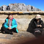 去的时候天气不太好,但是也觉得很满足,坐索道换乘一次就到山顶了,月由于最近天气原因山上雪不算少,我们去到山顶时还下着小雨,风很大,吹得头大凌乱,后来还下冰雨了,拍得脸疼,在休息亭里避了一会出来后竟然下雪了,作为南方人见到下雪太兴奋了,虽然下山后天马上晴了还出太阳,但能看到雪山下雪也算幸运了,有得有失吧,去丽江的时候没去玉龙雪山,觉得太贵,近500,石卡雪山能看到差不多的景色,但便宜很多,如果没有去玉龙雪山的朋友可以考虑一下石卡雪山,也很不错的