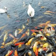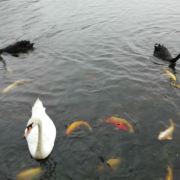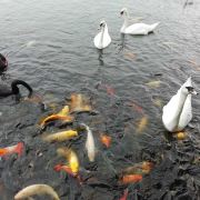 泰安天鹅湖的天鹅和锦鲤总找人喜欢