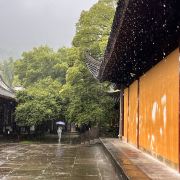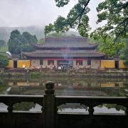 阿育王寺离宁波市区较远,去的当天大雨,打车前往费用在100出头。寺内有自助素斋,看了介绍特地前往,味道不错,就是12点去已经没啥食物了,建议要品尝的还是11就去。寺门在停车场附近,朝西开门,呵呵,一开始找不到门。寺内很幽静,人不挤,但慕名前来的这大雨天也有不少。正殿门口有赠香,可祈福。香炉前还有鸽子,这是第一次见。从放生池对面拍摄,大殿很庄重,有灵性。整个寺内树木茂盛,景致清雅,有山有水,也遇到几位僧人,感觉是清修的好地方。