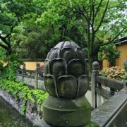 正门前造型别致的四根大石柱毋庸置疑地表明了这座寺庙的身份:阿育王寺。该寺始建于西晋太康三年(282年),被誉为天下禅宗名山之一,“八吉祥六殊圣地”。其之所以远近闻名,不仅仅因为山光秀丽,殿宇巍峨,更由于它有一座举世瞩目的舍利宝塔,是据说内藏释迦文佛真身舍利的84,000座宝塔之一。唐朝天宝年间,鉴真大和尚第三次东渡日本海上遇险后也是被明州府官船接回至此地休养直至第四次东渡成功,在中日交流史上传为佳话之一。[得意][太阳][月亮][玫瑰]