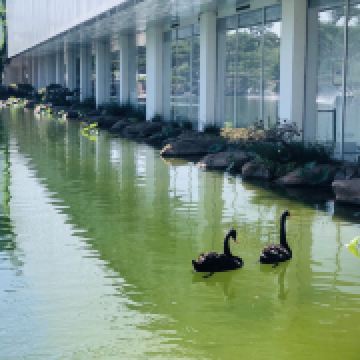 至今仍然忘不了第一次见到罗红作品的震撼,自那以后,基本每年都会来一次黑天鹅,其实并没有刻意,但人总有百无聊赖的荒废时光,亟需寻找一方净土找回自己内心的平静。 出地铁叫滴滴,其实并没有太繁复,车在路上,越接近越憧憬~ 这里的水雾总是令我欢喜--虽然是人造--简单的一汪池水,几尾锦鲤,四五松柏,宁静隽逸的氛围便出落出来了~ 等待下午茶的闲当口儿,踱步来后院转转。馆内的作品直击人心,室外的景色涤荡心灵,其中又以后院景色最为飘然~ 蠢笨的黑天鹅在陆地上挪蹭的时候并没有如水中般优雅,但我更喜欢她呆萌的可爱样子~ 下午茶的味道并没有什么好说,取个安静清新的意境罢了。简单吃喝过后,整束停当,准备去看罗红艺术馆。 (未完待续)