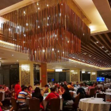 稻香酒家(盈熙分店)在江南大道西盈熙广场的五楼,附近有公交车站,地铁站较远,盈熙广场门口有大型的停车场,停车方便。 晚上和朋友过来吃饭,晚上的顾客比中午少很多,稀稀拉拉的,有几个大厅都没有对外开放。 餐厅的环境比较高大上,不过服务员不多,态度还过的去。 要了一个88元的沙巴双娇套餐,有两个餐品:黄飞红软壳虾和清蒸沙巴龙趸。 #黄飞红软壳虾 #份量大,虾很多很大只,配了青辣椒丝和红辣椒干。虾焗得很香很酥脆,红辣椒干很好吃。 #清蒸沙巴龙趸#一条龙趸大约一斤多重,很新鲜,蒸得火候正好,吃起来嫩滑。