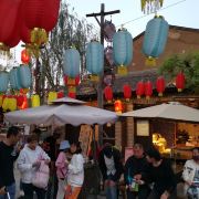 太行水镇这么热闹,是我没想到的。黄昏一串串的红灯笼亮起来,各色吃食一家连着一家摆开桌子开始营业,空气里都是烤肉炸串的香味儿,逛着超有食欲。店铺长得别有特色,都是土坯房,装饰成古老的农家模样,吃的可不含糊,有清真美食一条街,满街都是香喷喷的牛羊肉,有牛肉面,牛肉包子,红柳烤羊肉大串,最有特色的是牛肉罩饼,好多都是老字号。另一条街上汇集了全国各地的美食,热干面重庆小面肠粉齐聚一处,游客如织,热闹之极。吃完了再喝点奶茶,酸奶,果茶,到处都是。恋上太行买了一杯西柚果冰,淡淡酸甜很解渴。唯一的缺点是里面物价偏高~~