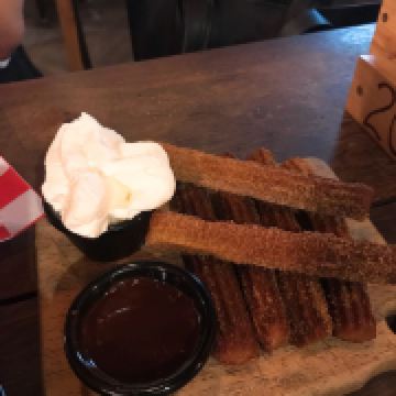 今天yuki来村找我玩,结果是我被她带着玩【逊炸了[跪了]去完博物馆她说我们去吃点东西吧,我说好然而除了日料我完全没头绪,问她想吃啥她说“除了日料,kfc和麦当劳以外,都可以。”……那我是真没辙了。最后还是我被她带到这家店[跪了][跪了]她点了bagel我点了南瓜沙拉【热的】然后再share一份churros,我俩的餐都好吃除了那份churros,又苦又涩难以下咽[跪了]