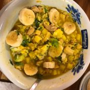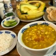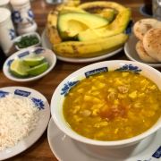 这是一家非常地道的哥伦比亚美食餐厅,里面有一道海鲜菜,其中的配料居然是香蕉。虽然感觉怪异,但是味道确实真的不错,将香蕉的甘甜和海鲜的鲜味融合在一块,给你的味觉,不同的冲剂真的超级好吃。