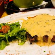 布鲁塞尔很有名的一家店,主要经济又实惠,价格亲民,牛排也是同类饭店里面价格算比较低的,其实全世界都一样,实惠才是王道,里面的肉饼做的很好吃哦。