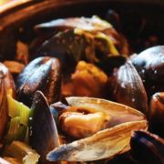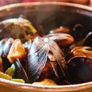 Mussels-Cream & garlic and white wine|店里每一桌都会出现的食物就是这一小锅青口了。点了双拼口味 贪心的想要一次性尝遍全部 虽然菜单上写着一人份 但实际女生的话两人share一份就已足够。刚端上来时服务员会敲敲锅盖再打开 问了小哥这是为什么 他开玩笑的说因为要确保锅里的青口每个都熟透了不会蹦出来 青口的新鲜口感自然不用多说 特色在于做法会加入西芹粒一起煮 吃起来更清爽香甜。汤汁别浪费!用配有的餐前面包和薯角蘸着吃吧Flemish beef stew in brown Grimbergen beer|啤酒炖牛肉可以说是比利时国菜了。作为一个啤酒闻名的国家 菜式里又怎么能少得了啤酒。用了本国的Grimbergen啤酒入菜 把牛肉炖的非常烂且入味 吃起来带一丝啤酒的香气和甜味。配有薯角 蘸牛肉酱汁吃莫名很搭!这份牛肉真的是一口入魂啊!!