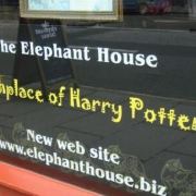 爱丁堡大象咖啡馆也称为魔法咖啡馆。右侧窗下写着“Birthplace of Harry Potter”(哈利波特诞生地)。当年穷困潦倒的J.K.罗琳就是在这里每天点一杯咖啡,一边望着窗外的爱丁堡街景一边写出了早期的《哈利•波特》。。