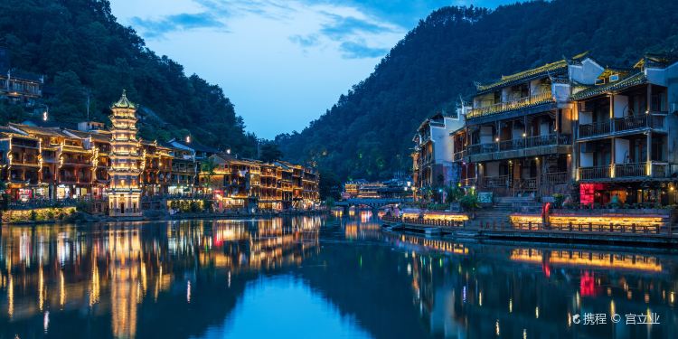 行程:凤凰古城 - 凤凰广场 - 虹桥风雨楼 - 风桥 - 沱江跳岩 - 沱江古街 - 芙蓉镇 - 芙蓉镇景区-王村古街 - 红石林国家地质公园 - 南华门 - 沈从文故居 - 万寿宫 - 万名塔