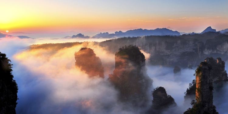 行程:天门山国家森林公园-鬼谷栈道 - 天门山国家森林公园 - 天门山玻璃栈道 - 通天大道 - 天门山索道 - 金鞭溪峡谷 - 袁家界景区 - 杨家界景区 - 土家老院子 - 不二门温泉 - 凤凰古城 - 墨戎鼓镇